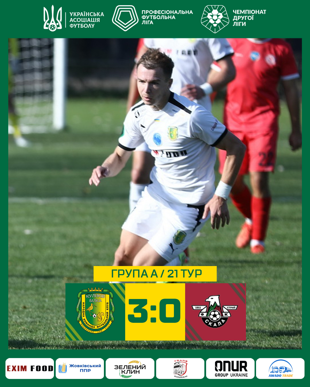 У заключній грі осінньої частини чемпіонату України серед команд клубів другої ліги ФК «Куликів-Білка» на стадіоні «Арена Куликів» у «львівському дербі» приймав стрийську «Скалу 1911» і, завдяки трьом проведеним у другій половині зустрічі голам, здобув перемогу з рахунком 3:0 та пішов на «зимові канікули» у ранзі лідера групи «А» другої ліги. Обидві команди вийшли на…