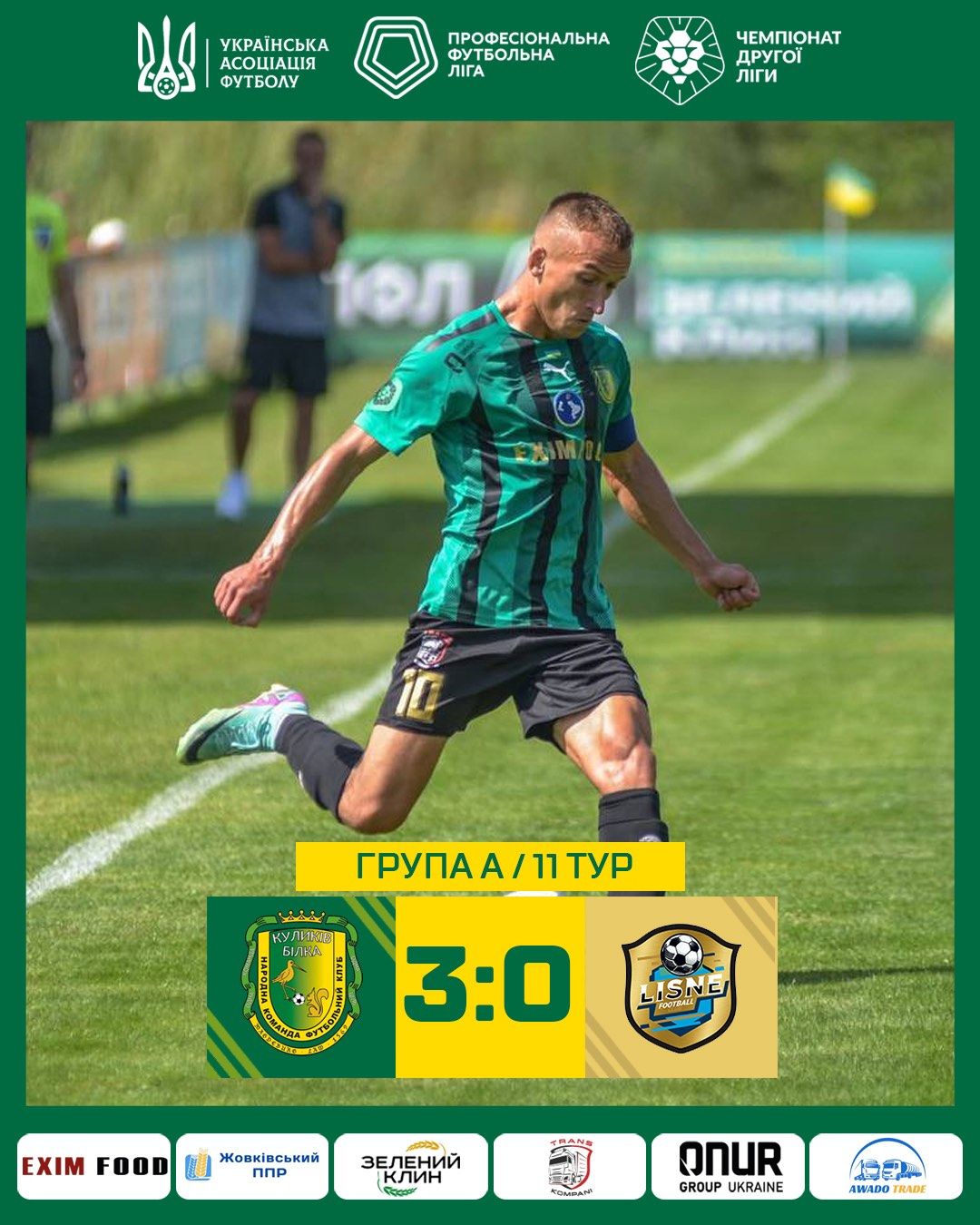 ФК «Куликів-Білка» у поєдинку завершального одинадцятого туру першого кола на стадіоні «Арена Куликів» приймав одного із лідерів ФК «Лісне» і здобув перемогу з рахунком 3:0. Відкрили рахунок підопічні Сергія Атласюка на 20-ій хвилині гри. Після атаки пправим флангом Сергій Копил виконав простріл у карний майданчик і Віталій Патуляк ударом метрів з десяти спрямував «круглого» у…
