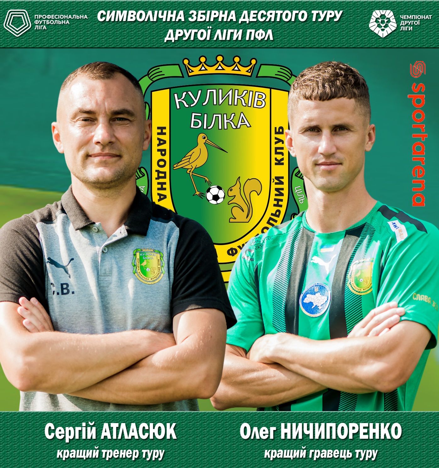 За підсумками десятого туру другої ліги, у якому ФК «Куликів-Білка» на стадіоні «Сокіл» у Стрию з рахунком 2:0 переміг місцеву «Скалу 1911», інформаційний партнер змагань ПФЛ портал «Sportarena» визнав головного тренера ФК «Куликів- Білка» Сергія АТЛАСЮКА – кращим тренером туру, а гравця команди Олега НИЧИПОРЕНКА – кращим гравцем туру. Вітаємо Сергія Вікторовича та Олега з…